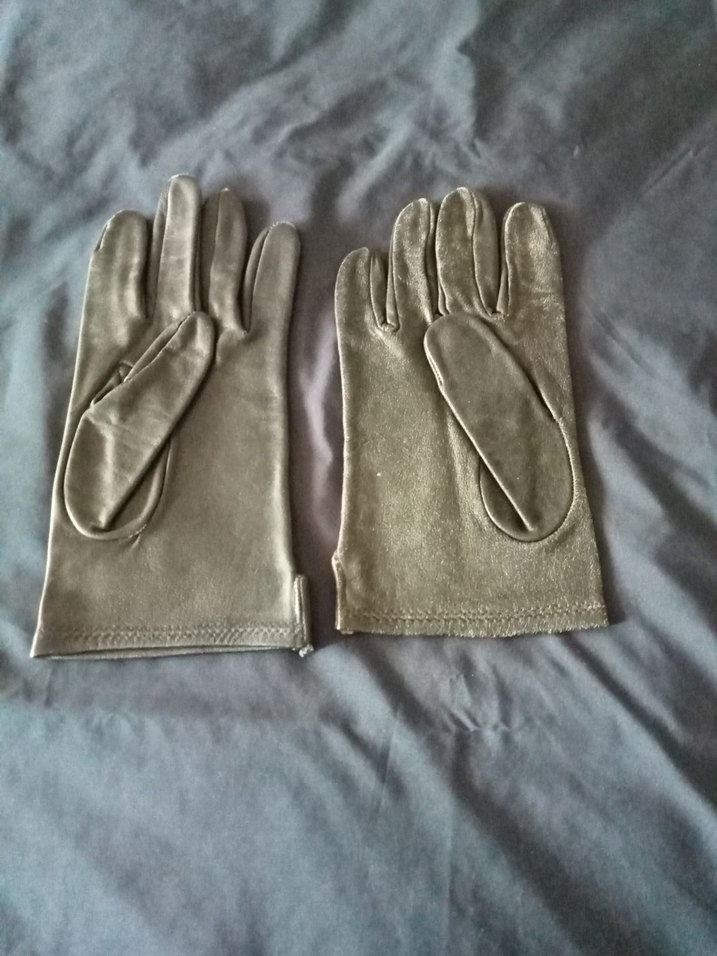 Yumuşak deri den yapılmış, siyah sağ el bi boy küçük yıpranma payı vardır eldivenleri. vintage tarzda.
