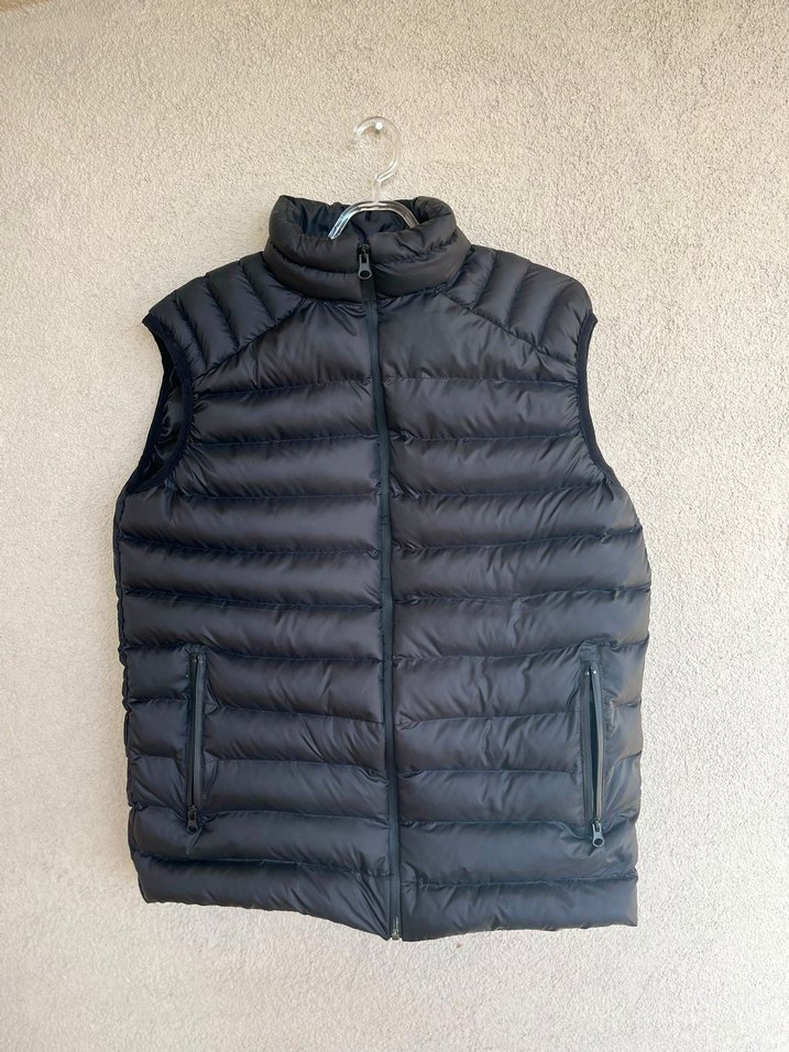 Siyah renkli, dik yakalı ve fermuarlı, kapitone desenli erkek yelek. Rahat kesimli, günlük kullanıma uygun ve yumuşak sıcak kumaştan üretilmiştir.