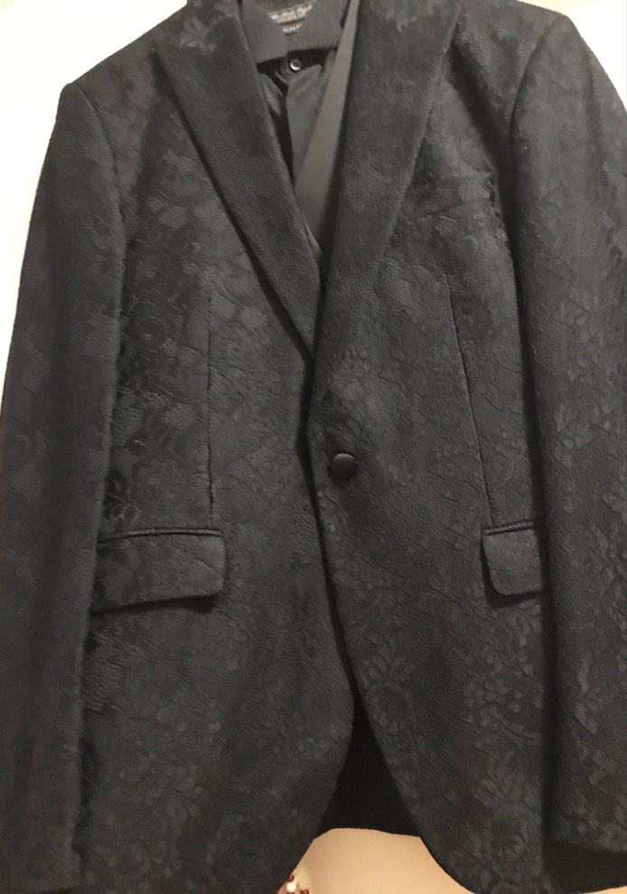 Siyah, düğmeli, klasik kesim erkek takım elbise. Uzun kollu, desenli dokusu ile damatlık yada gala ve özel geceler için uygundur. Abdullah Kığılı marka slim fit 48gömlek yelek ceket pantolon takım