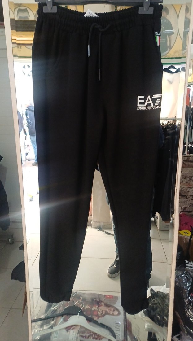 Siyah renkli, bol kesim ve lastikli bel özellikli erkek eşofman altı, yumuşak ve sıcak kumaştan EAZ baskılı, spor ve günlük kullanıma uygun.