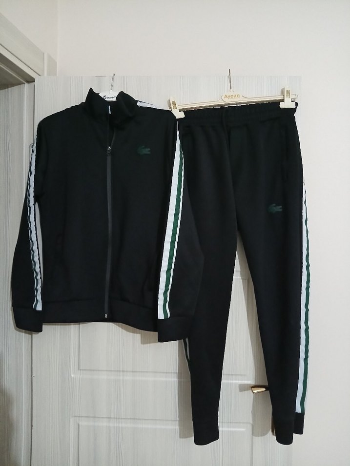 Yüksek yakalı ve bantlı kollu siyah erkek eşofman takımı, Velcro detaylıdır. Rahat kesimi ve yumuşak, sıcak kumaşıyla günlük kullanıma uygundur.