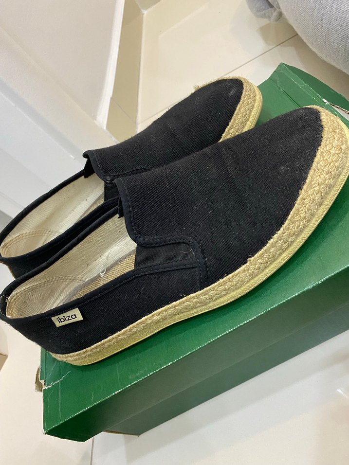 Siyah renkli, velcro bağlamalı erkek espadril ayakkabılar, rahat tabanlı ve günlük kullanım için uygun.