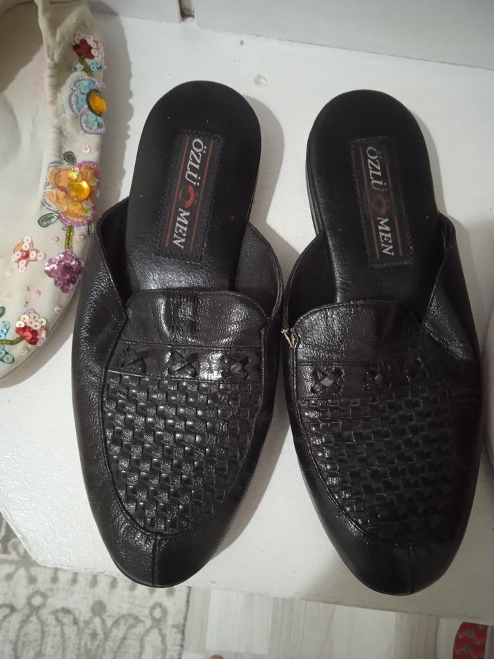 Siyah,rugan erkek ev terliği,çok çok az giyildi,dolapta beklemekten ön tarafta hafif yıpranma olmuş o kadar,tertemiz.