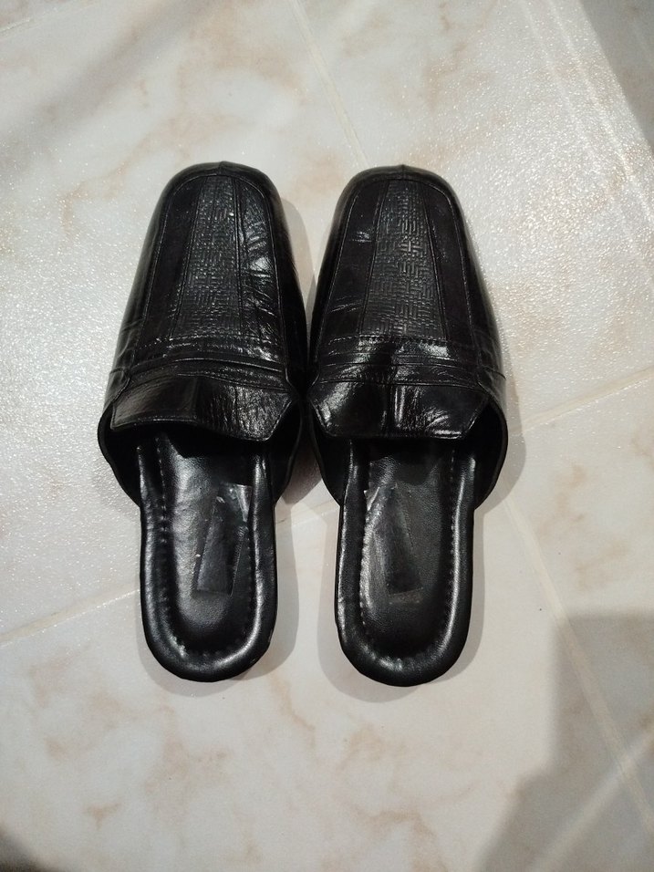 Siyah renkte,erkek ev terlikleri. damat terliği olarak alunmıştı. bir kaz kez misafir kullandı sağlam temiz ürün