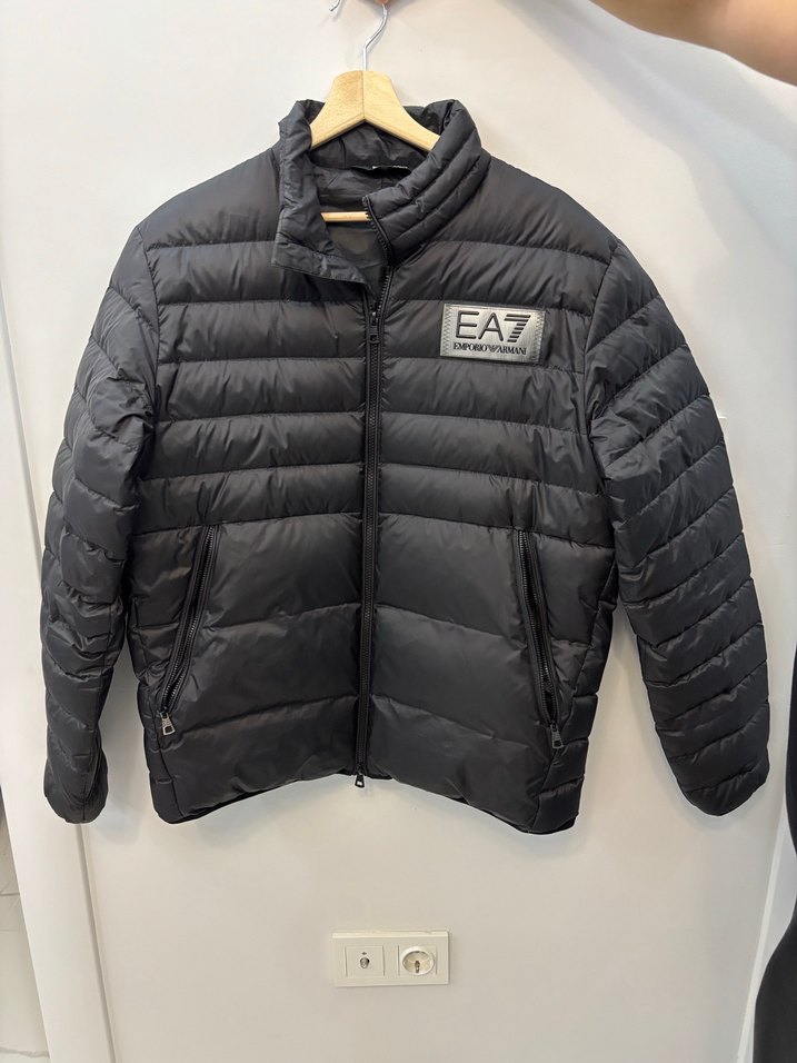 Siyah renkte, fermuarlı ve ince dolgulu erkek mont. Uzun kollu, bisiklet yaka ve günlük kullanıma uygun şık tasarım.