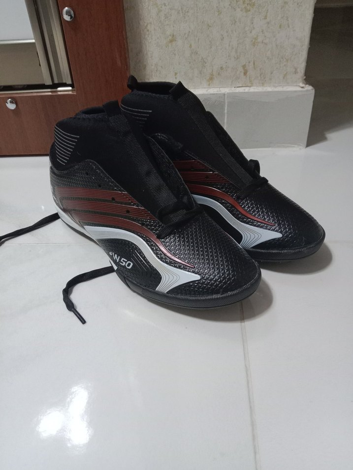 Siyah renkli, velcro kapamalı erkek futbol ayakkabısı. Hiç kullanılmadı 41 ama kalıbı küçük o sebeple olmadı, 40 numaraya uygun.