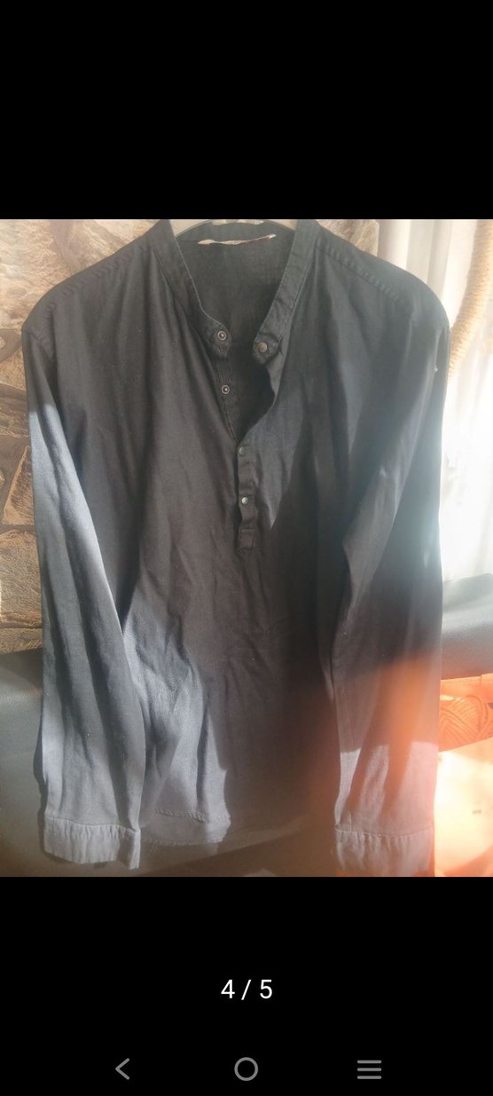 Siyah erkek gömlek, uzun kollu ve düğmeli. Sade ve minimalist tarzda günlük kullanım için uygundur. Yaka kısmı çıtçıtlı gömlek. Ölçüleri; en 50, boy 72 cm' dir. Yıkandı ancak kullanılmayacağı için ütülenmedi. Ütülenmiş haliyle estetik duracaktir. Herhangi bir sorunu bulunmamaktadır.