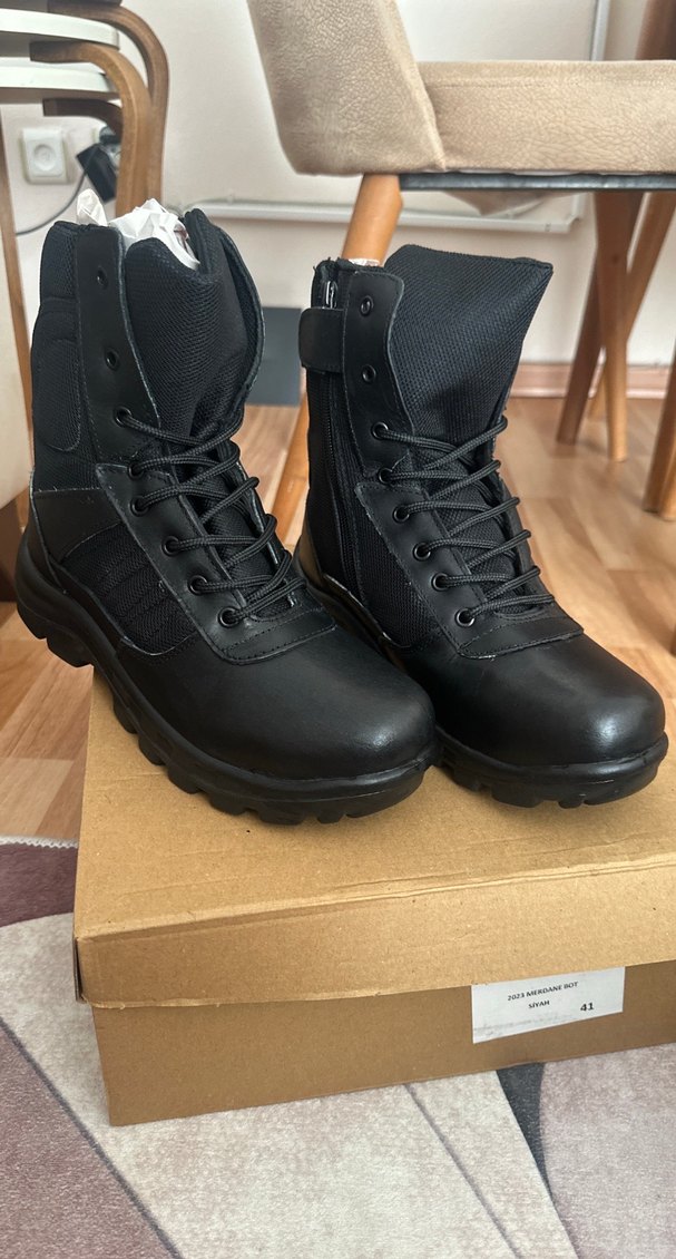 Siyah kauçuk erkek botlar, goth tarzında, kemerli tasarıma sahip, sokak stiline ve günlük kullanıma uygun. Bağcıklı ve sağlam tabanlı.