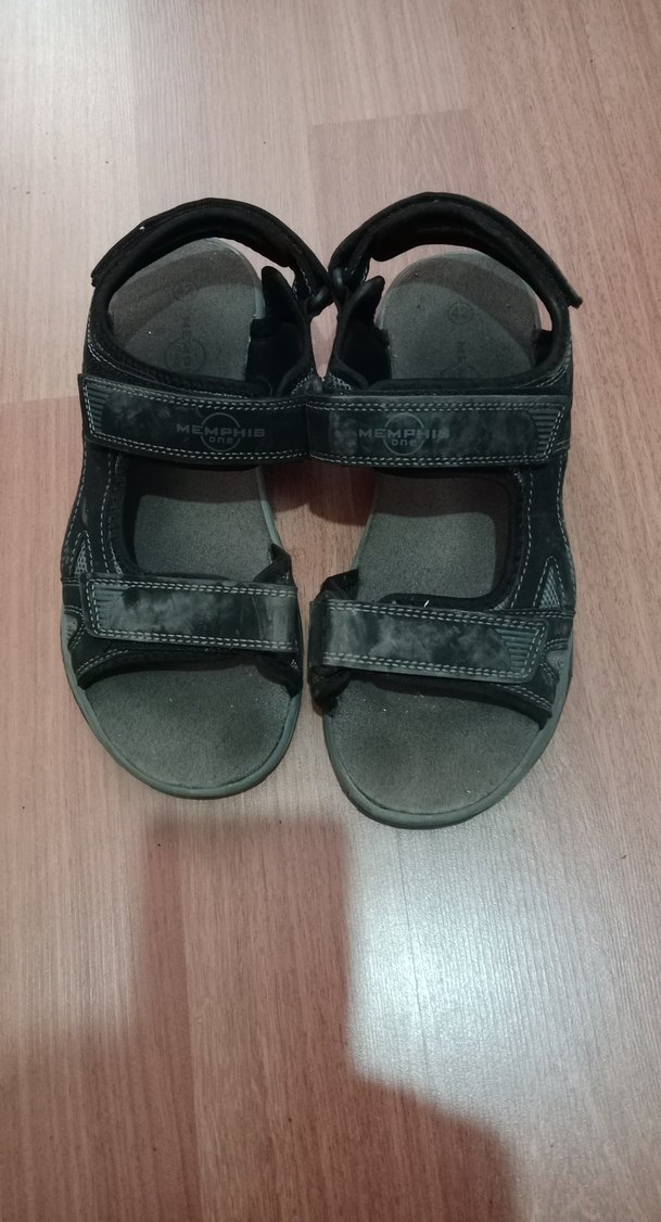 Siyah renkte, kemerli ve kauçuk malzemeden yapılmış erkek sandaletleri. Minimalist ve günlük sokak stili için uygundur.