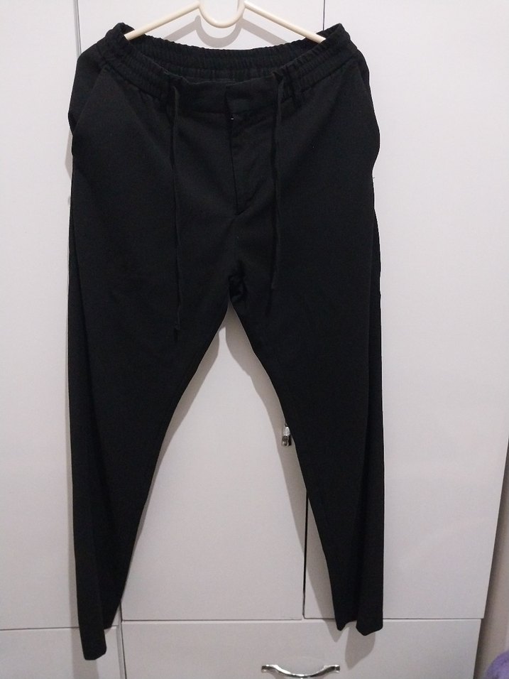 Siyah, regular fit ve normal boyda, sentetik kumaştan yapılmış erkek pantolonu, günlük rahat kullanım için uygundur ve zahmetsiz şıklık sunar. 46 beden