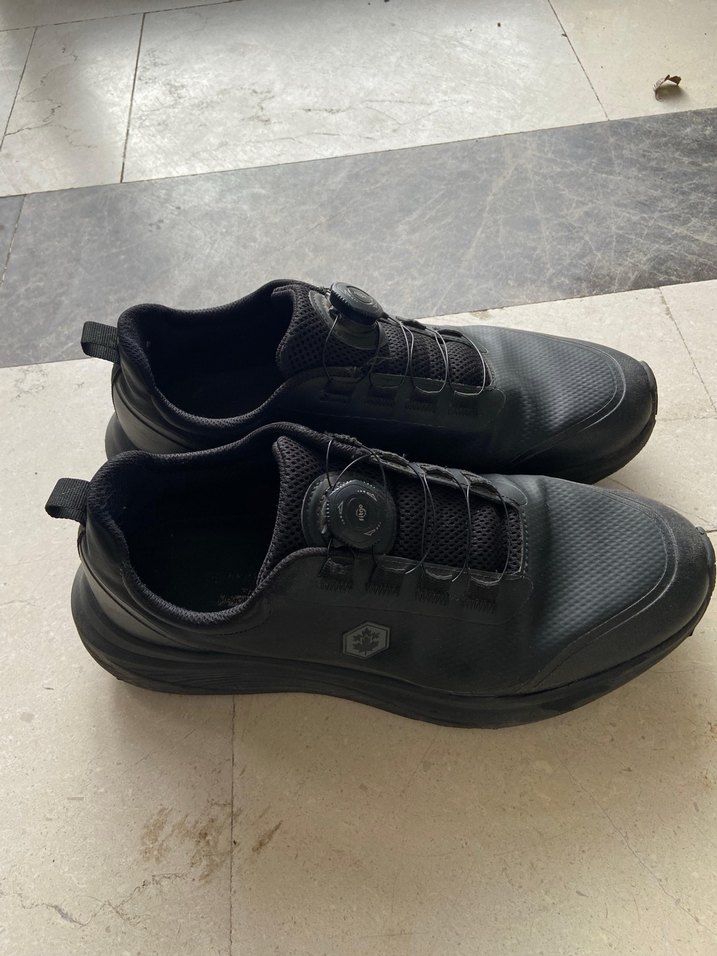 Siyah renkte, kauçuk tabanlı erkek spor ayakkabısı. Kolay kullanım için Velcro kapama sistemi bulunur. Günlük sokak stili için uygun, desensiz ve koyu renklidir.