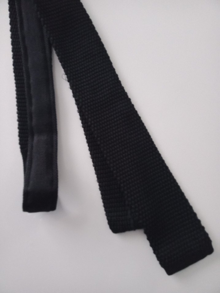 Bu erkek Spor örgü kravatı, ince tasarımı ve dokulu siyah kumaşıyla klasik gotik stile uygun sade ve koyu bir görünüme sahiptir.