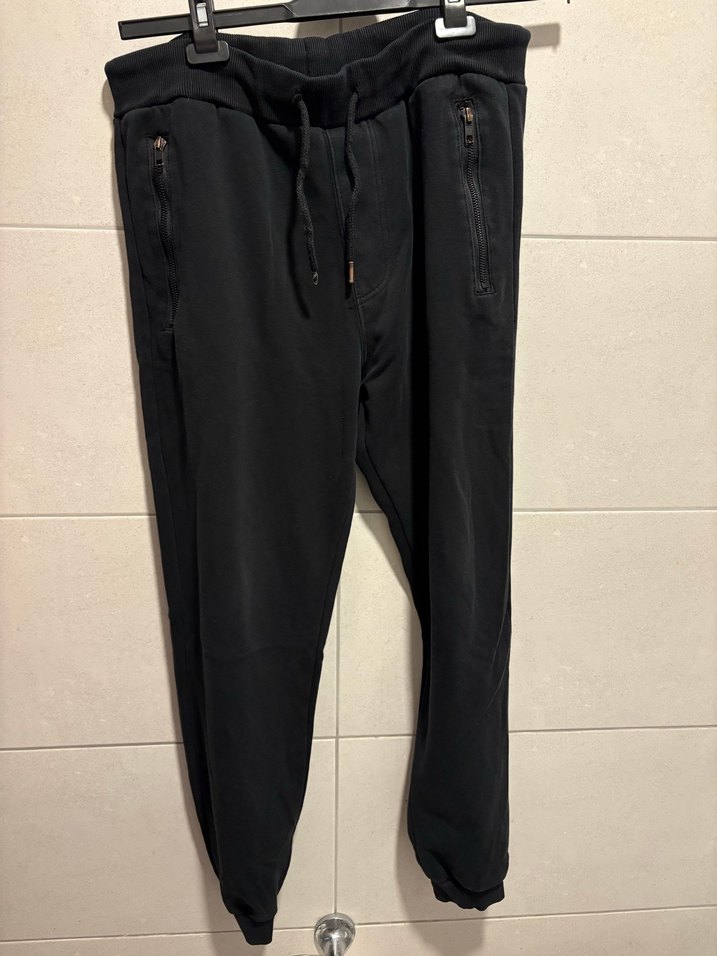 Siyah renkli, bol kesim erkek jogger eşofman. Fermuarlı cepleriyle günlük kullanıma uygun rahat ve şık bir model.