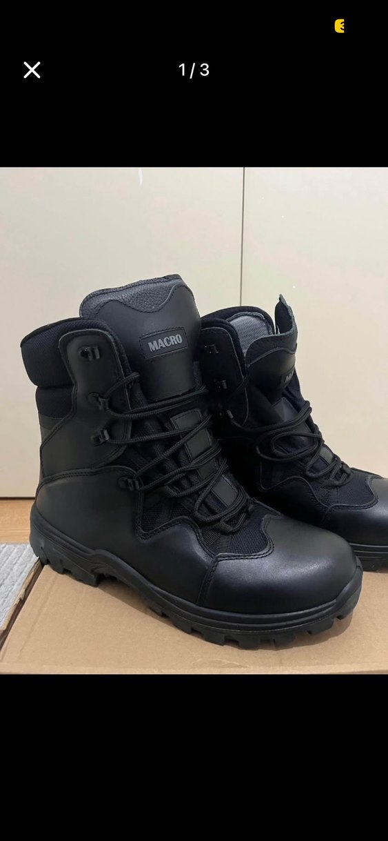 Siyah kauçuk erkek botlar, kamuflaj desenli ve cırt cırt detaylı. Günlük sokak stili için sade ve temel tasarım. Marka: MACRO. Sadece 1-2 kez giyilmiştir.
