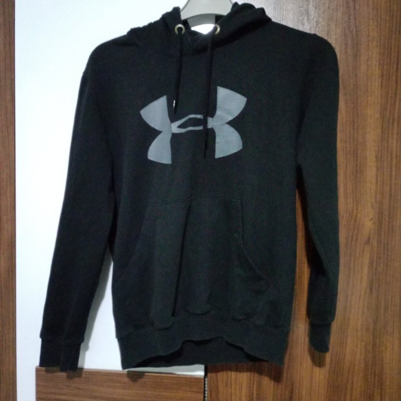 Siyah erkek kapüşonlu sweatshirt, uzun kollu ve yuvarlak yaka. s ve m beden