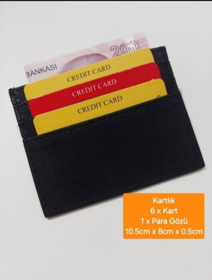 Siyah renkli, baskılı desenli erkek kartlık cüzdan. 6 kartlık ve 1 para gözlü, ölçüleri 10,5cm x 8cm x 0,5cm. İş tarzına uygun.