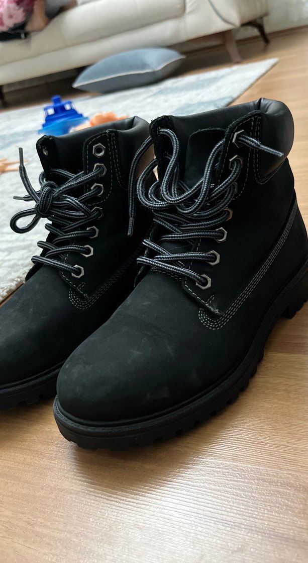 Bu siyah erkek botlar, kauçuk malzeme ve bağcıklı, tokalı detaylara sahip. Sokak stili ve günlük kullanım için uygun, desensiz koyu renkte.