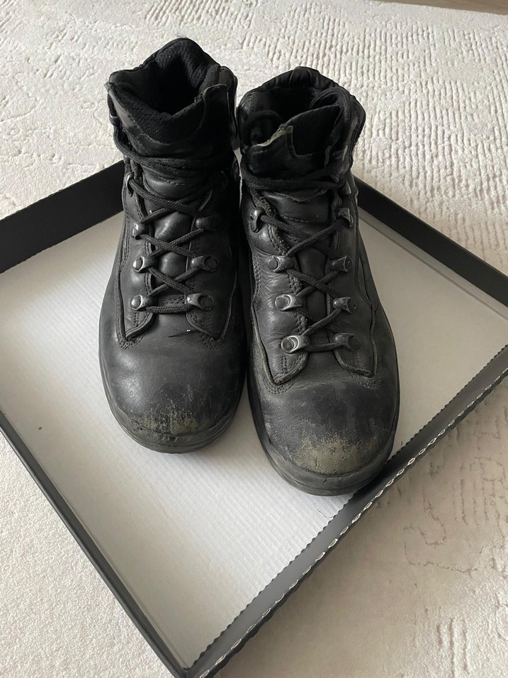 Kauçuk malzemeden siyah erkek botları, tokalı ve goth tarzında. Grunge punk havası taşıyan, günlük kullanıma uygun koyu renkte ve desensiz botlar. Tam kalıptır kusurları mevcuttur
