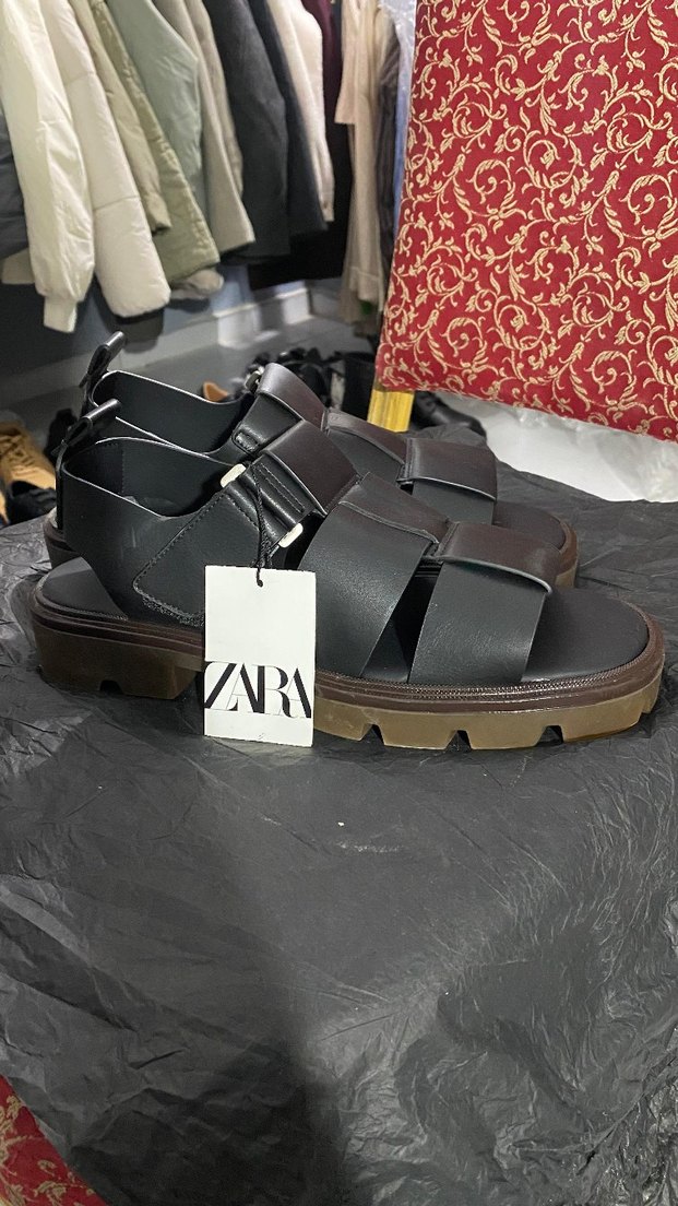 Siyah kayışlı ve baskılı detaylı erkek sandaletleri, dayanıklı kauçuktan yapılmıştır. Sokak stili ve günlük kullanım için uygundur. Marka: ZARA.