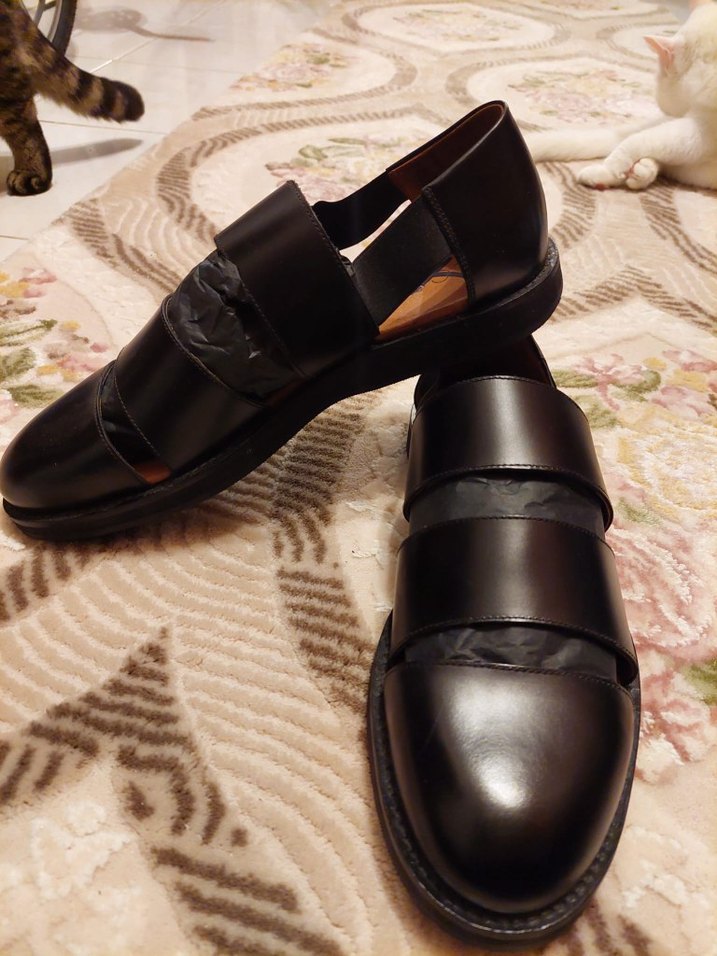 Kemerli bantlara sahip siyah erkek sandaletleri, klasik ve geleneksel tarzda, günlük kullanım için uygundur. 45 numara