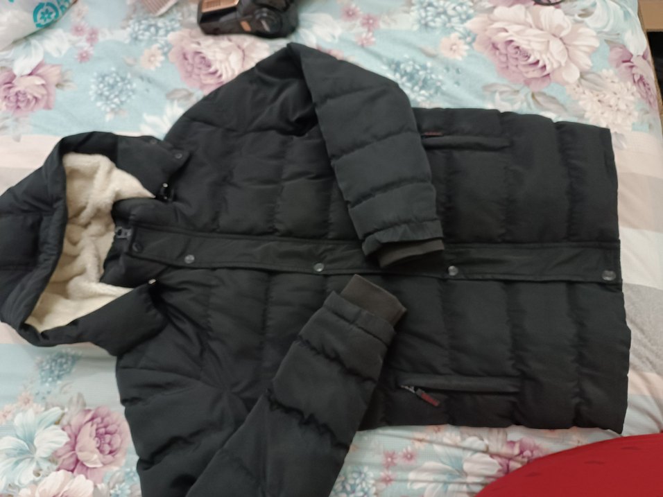 Siyah, erkek mont. içi elyaf dolgu astarlı sıcak tutuyor. sıcak tutuyor gayet sağlam herhangi bir deforme yok. tertemiz . eşim 180 boy. 70 kiloyken de 85 kiloyken de rahat giydi