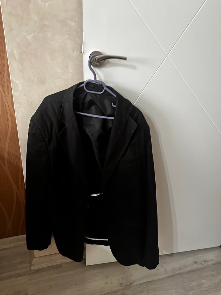 Bu siyah erkek takım elbise, kesik yaka, uzun kollu ve kemerli normal kesimdir. Midi boyda ve desensiz, ofis ve sokak stili için uygundur. ️