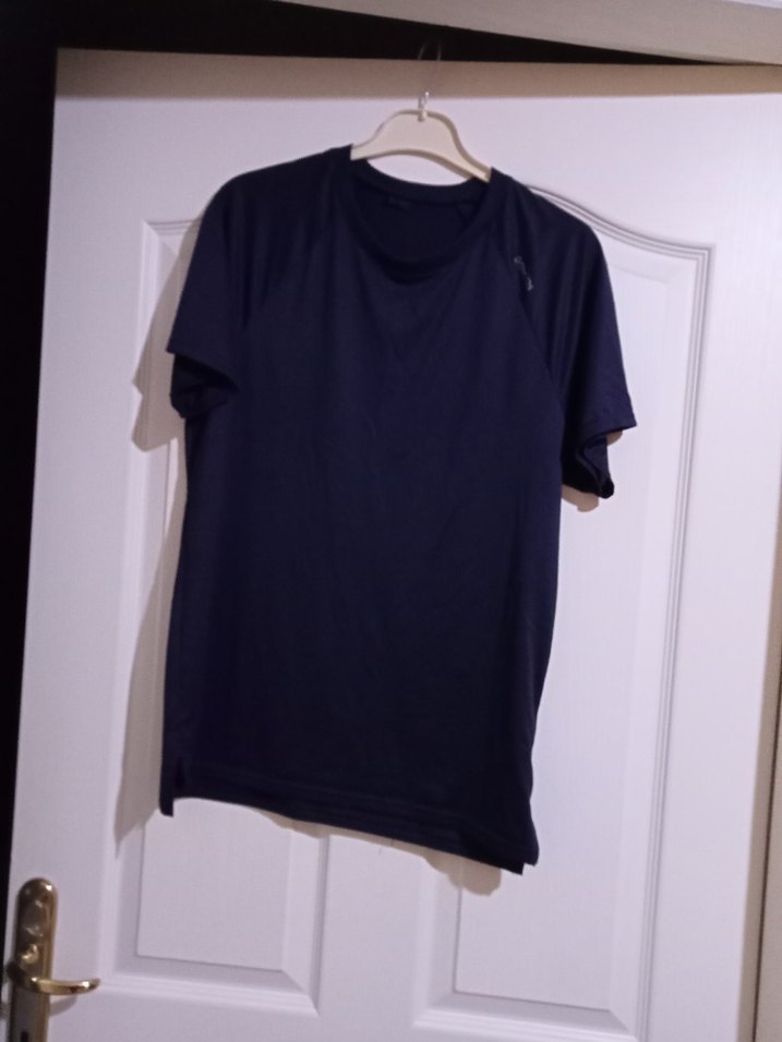 Siyah, kısa kollu, yuvarlak yaka, bol kesim erkek tişörtü, yumuşak sentetik kumaştan, günlük kullanıma uygun.