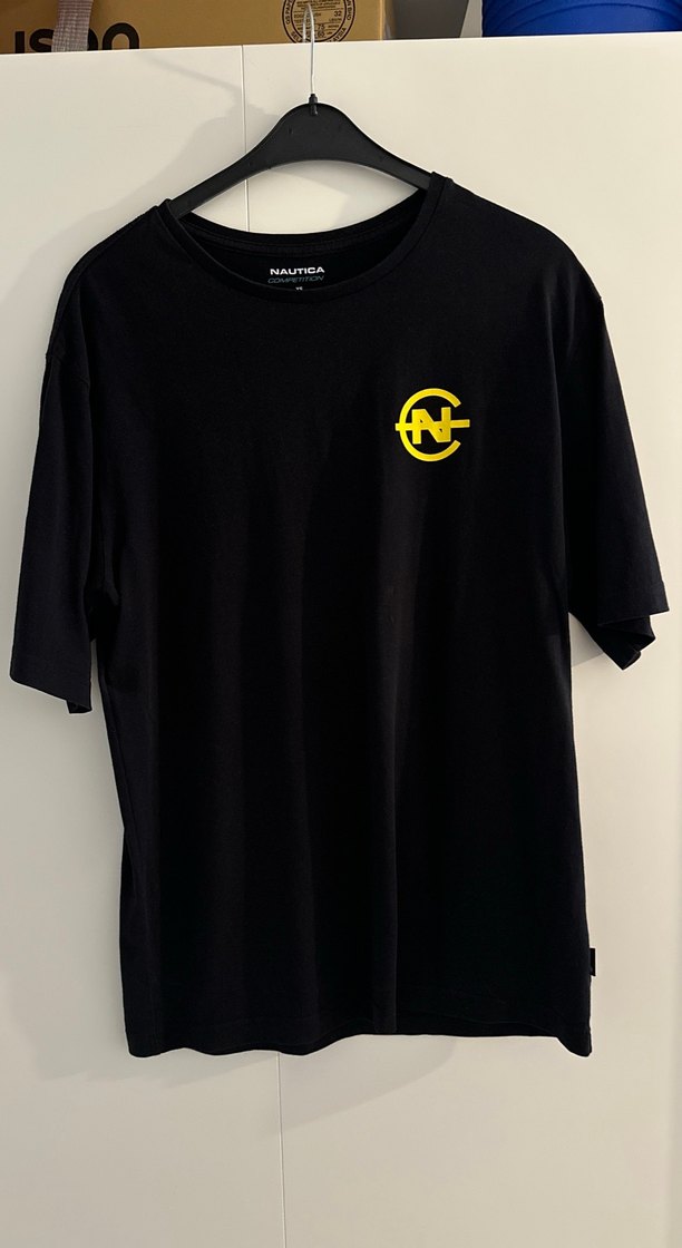 Siyah, sarı baskılı logo detaylı, kısa kollu, rahat kesim ve yuvarlak yakalı erkek tişörtü. Yumuşak ve sıcak kumaştan, spor ve günlük kullanıma uygun.