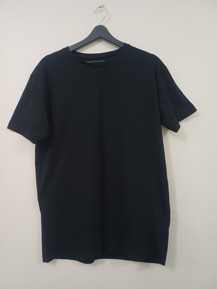 Siyah, kısa kollu, yuvarlak yakalı, bol kesim erkek tişörtü, yumuşak sentetik kumaştan, günlük kullanıma uygun. XL BEDEN PAMUKLU SIFIR ÜRÜN İKİ KOL ARASI/55 CM BOY/72 CM