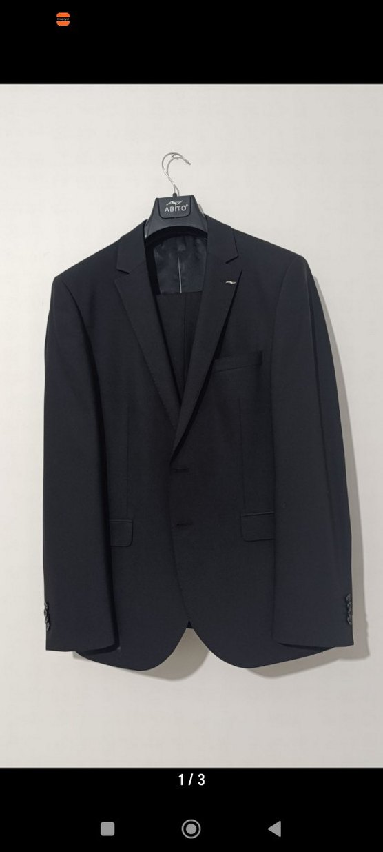 Uzun kollu, düğmeli ve klasik düz kesim siyah erkek takım elbisesi. Notch yaka ve normal boy uzunluğunda, ofis stiline uygun.