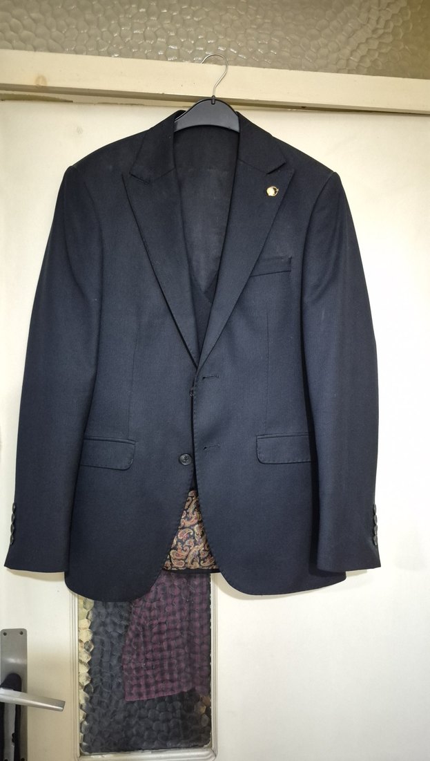 Siyah renkli, klasik kesim erkek takım ceketi, düğmeli ve uzun kolludur. Düz ve koyu kumaştan, ofis ve iş ortamları için uygundur. Normal boyda ve şık tasarıma sahiptir.Yanında beyaz gömlek kravat altına iki adet siyah pantolon birlikte gönderilecektir Birkez giyildi gömlek dahil yıkanmadı hafif sararmış isterseniz yıkama yaparım kuru temizlemeye vermek isterseniz o şekilde göndereyim iade kabul etmiyorum bilginize