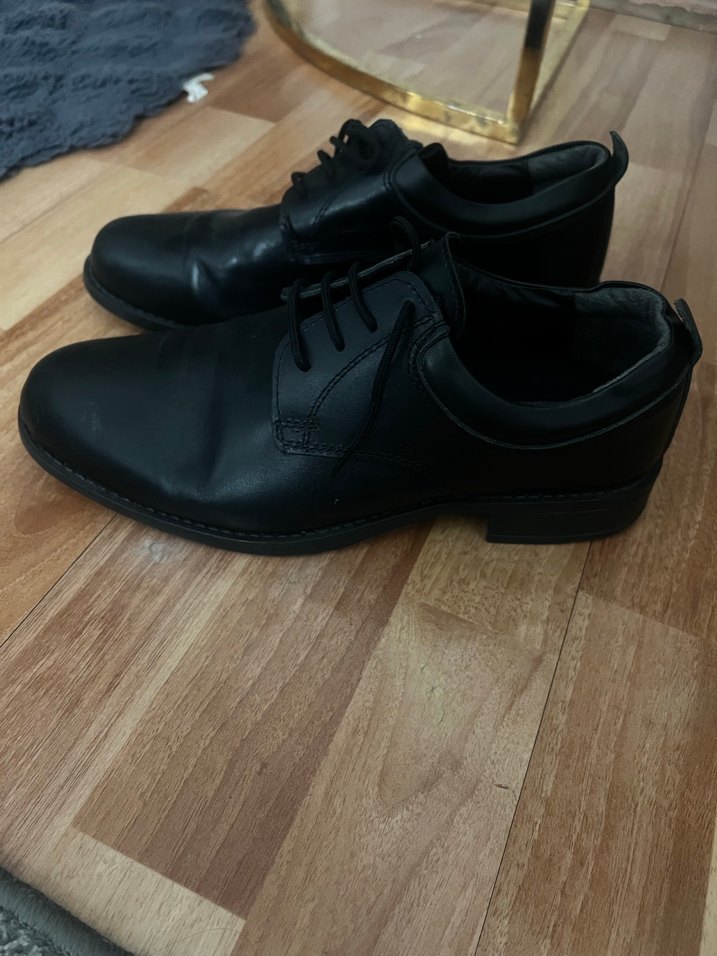 Siyah erkek klasik ofis ayakkabısı, tok ve kayış detaylıdır. Rahatlık ve dayanıklılık için kauçuk taban kullanılmıştır. İş ve gündelik stil için uygundur.