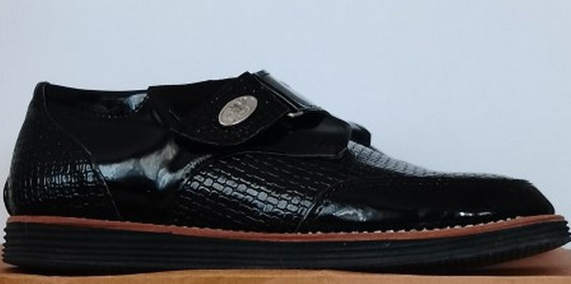 Kauçuk malzemeden yapılmış, yılan desenli ve tokalı siyah erkek klasik ayakkabı.