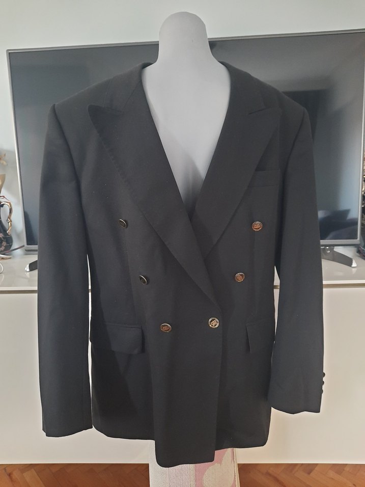 Siyah renkte, kruvaze yaka ve düğmeli ön kısmı olan erkek ceket. Normal kesim ve uzun kollu, klasik ve desensiz tasarıma sahip, iş ortamı için uygun. ️iki kol arası 54cm,ceket boyu 77cmdir,marka temsili.