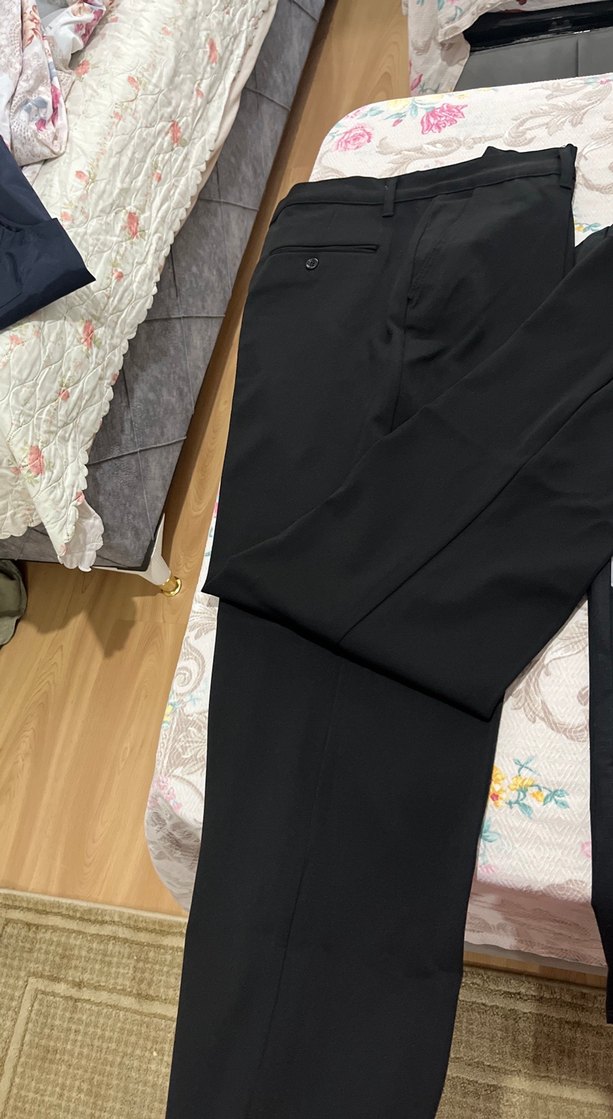 Siyah renk, kemer tokalı, regular fit erkek pantolon. Pürüzsüz sentetik kumaştan üretilmiştir. Ofis ve sokak stili için uygundur 48 beden .