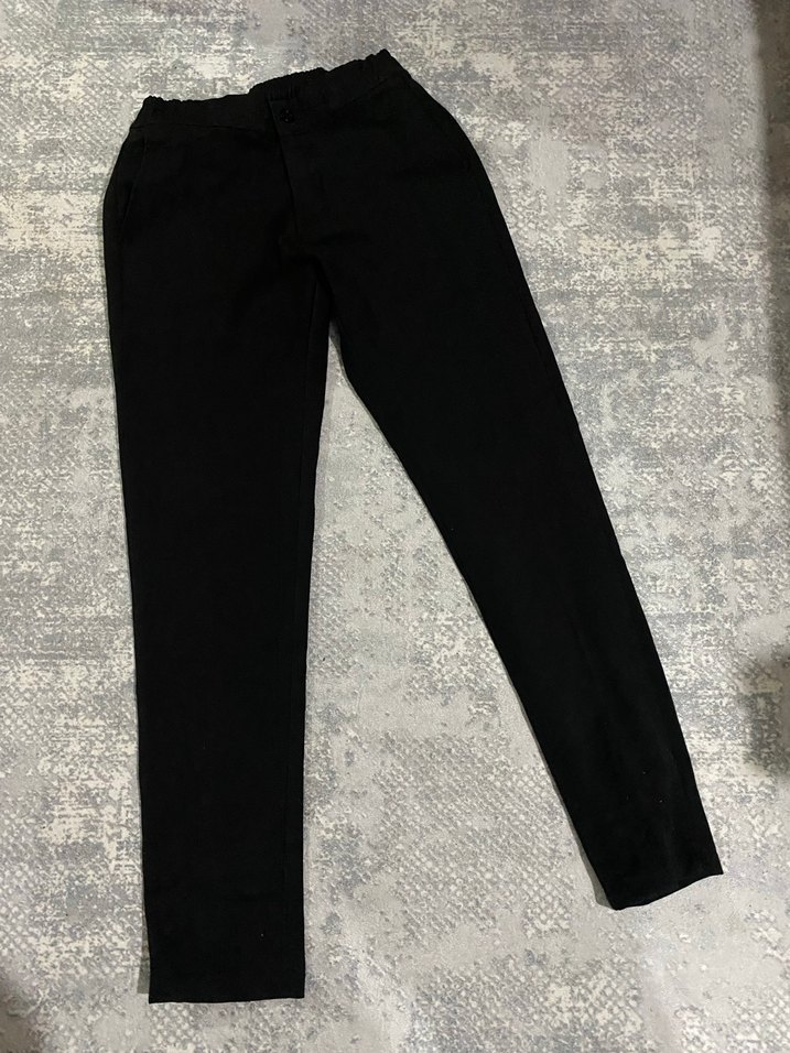Kadınlar için siyah midi uzunlukta, düzenli kesim kumaş pantolon. Minimalist ve sokak modası tarzında, günlük kullanım için rahat ve şık bir seçenek.