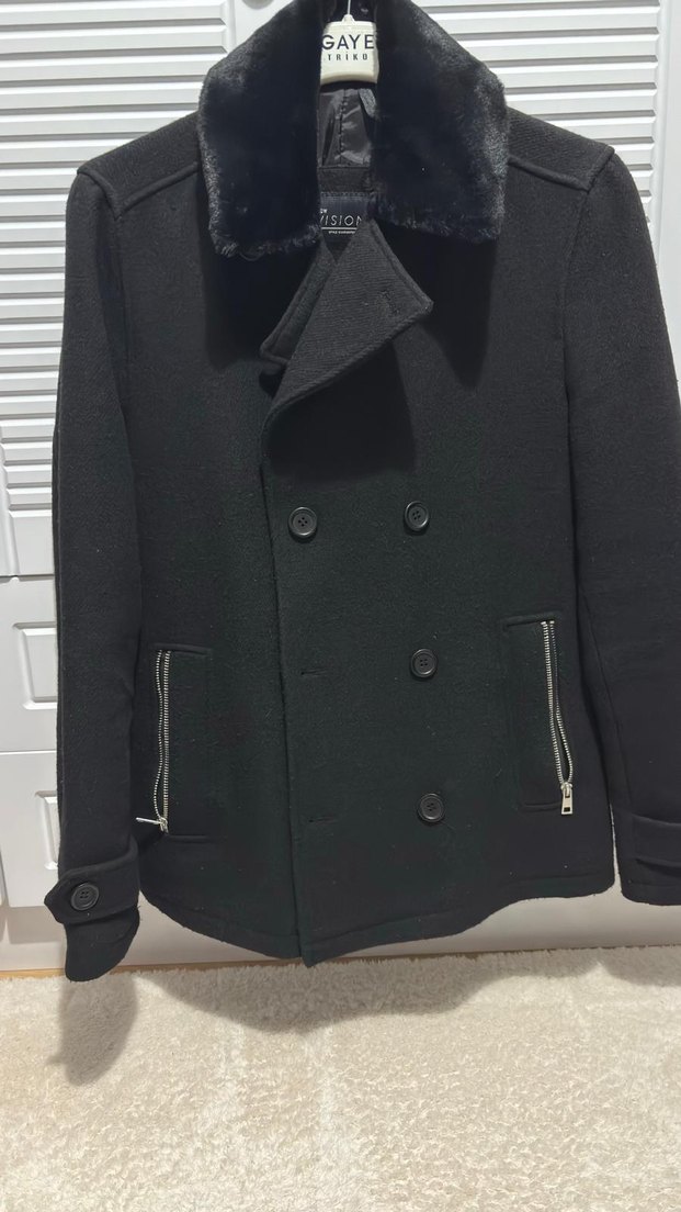 Siyah, düğmeli, midi boy erkek kaban. Notch yaka, uzun kollu ve fermuarlı ceplidir. Rahat kesim, yumuşak ve sıcak kumaştan üretilmiştir. Lcw marka s beden çok az kullanıldı hiçbir deforme Vs yok