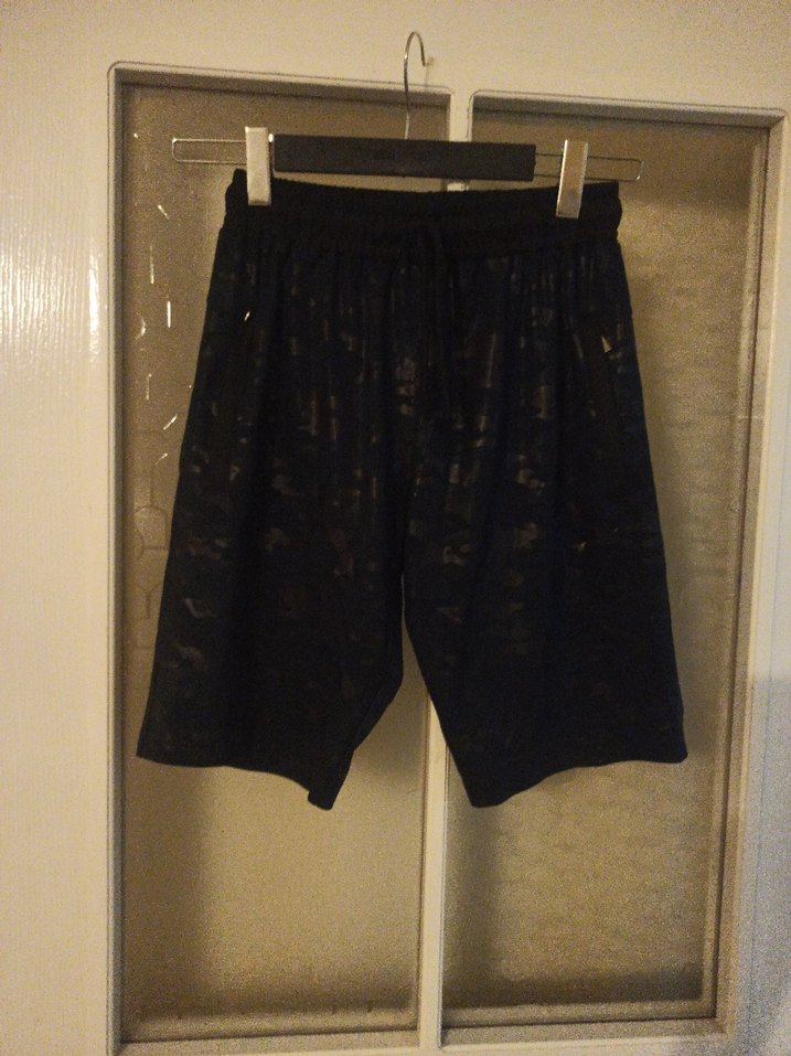 Siyah, sentetik kumaştan erkek mini şort, bol kesim. Günlük sokak stili ve spor şıklığı için uygun, zahmetsiz şıklık sunar.