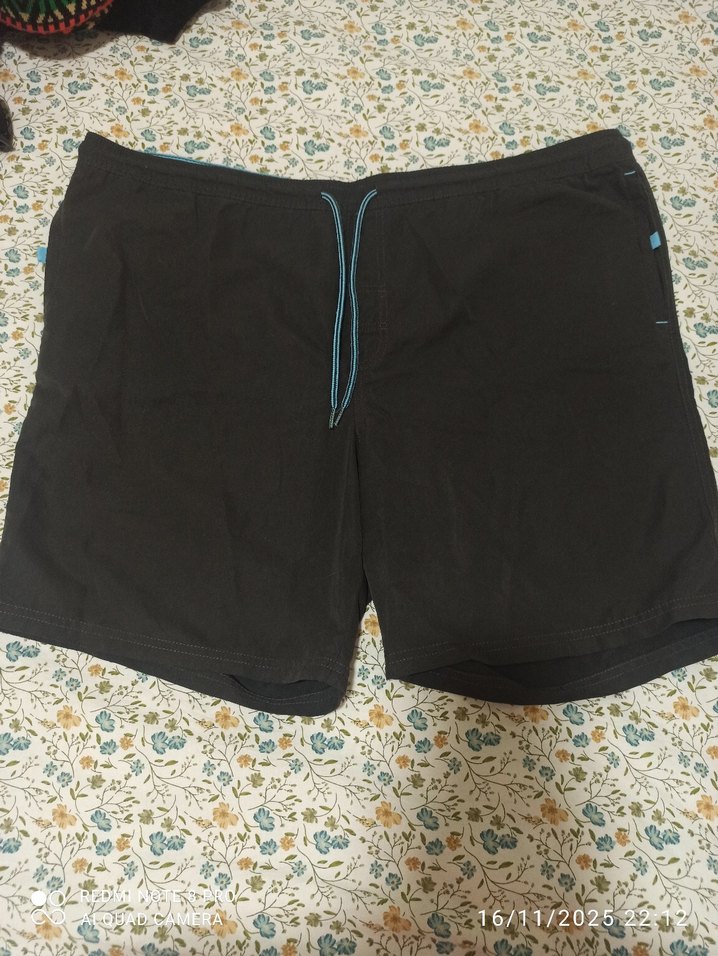 Siyah renkli, kemerli bel yapısına sahip, bol kesim erkek yüzme şortu. Plaj ve sokak stiline uygun sade ve temel tasarım.