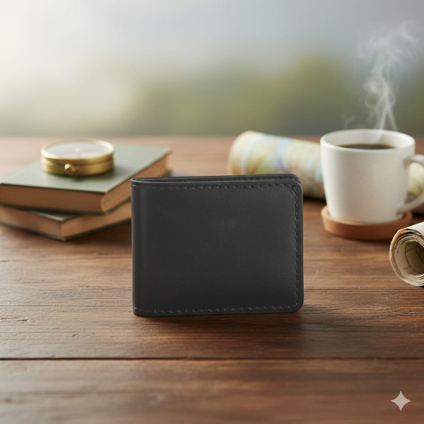 Siyah erkek cüzdan, desen içermeyen minimalist tasarıma ve sade counterculture stiline sahiptir. Klasik ve sade görünümlüdür.
