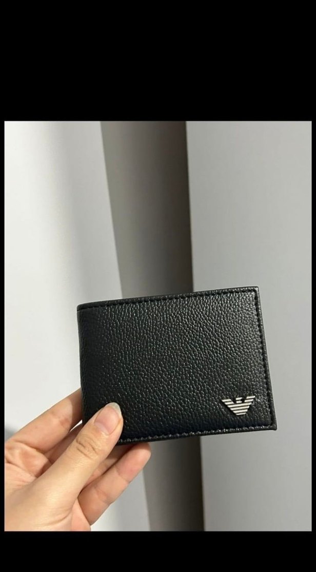 Siyah erkek cüzdan, minimalist tasarıma sahip, baskılı dokusu ve küçük metal logosu ile trendy casual sokak stiline uygundur.