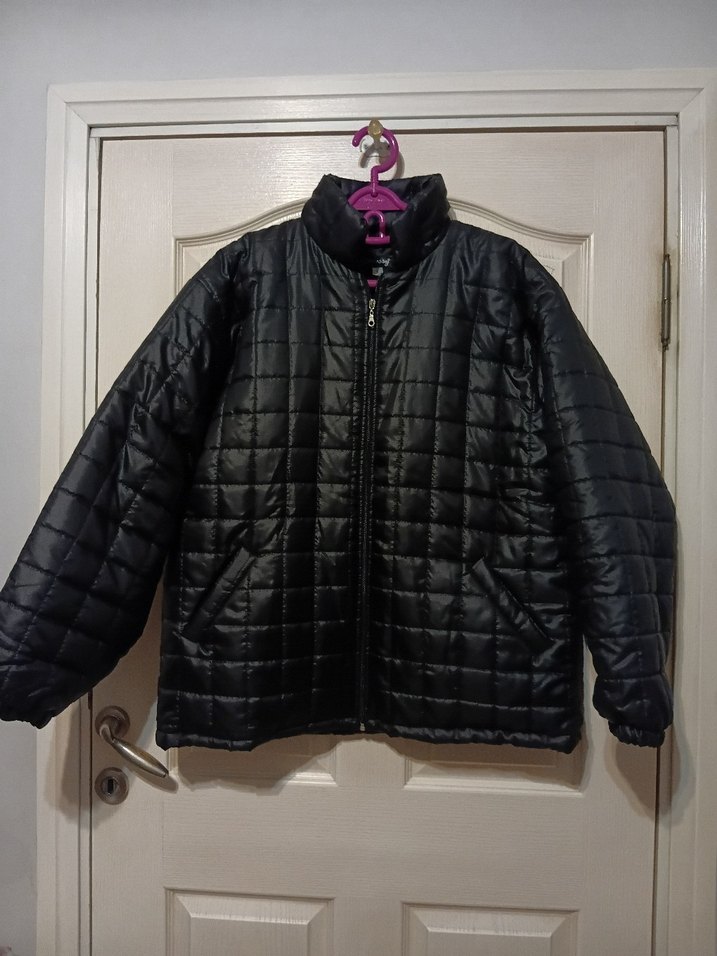 Siyah renkli, yüksek yakalı ve uzun kollu, fermuarlı erkek mont l beden maşet lastikli astarlı, beden mezura ölçüsü iki kol arası 61 cm ,boy uzunluğu 76 cm ,kol boyu 64 cm yeni ürün.