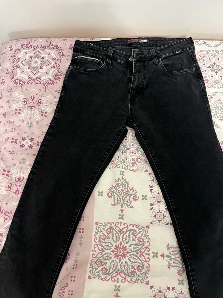 Siyah renkli, normal boy, regular fit denim kot pantolon, günlük sokak stiline uygun.