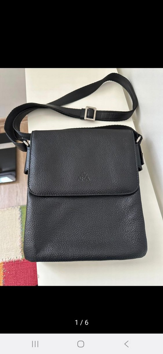 Siyah Erkek Omuz Çantası Tokalı Aka deri