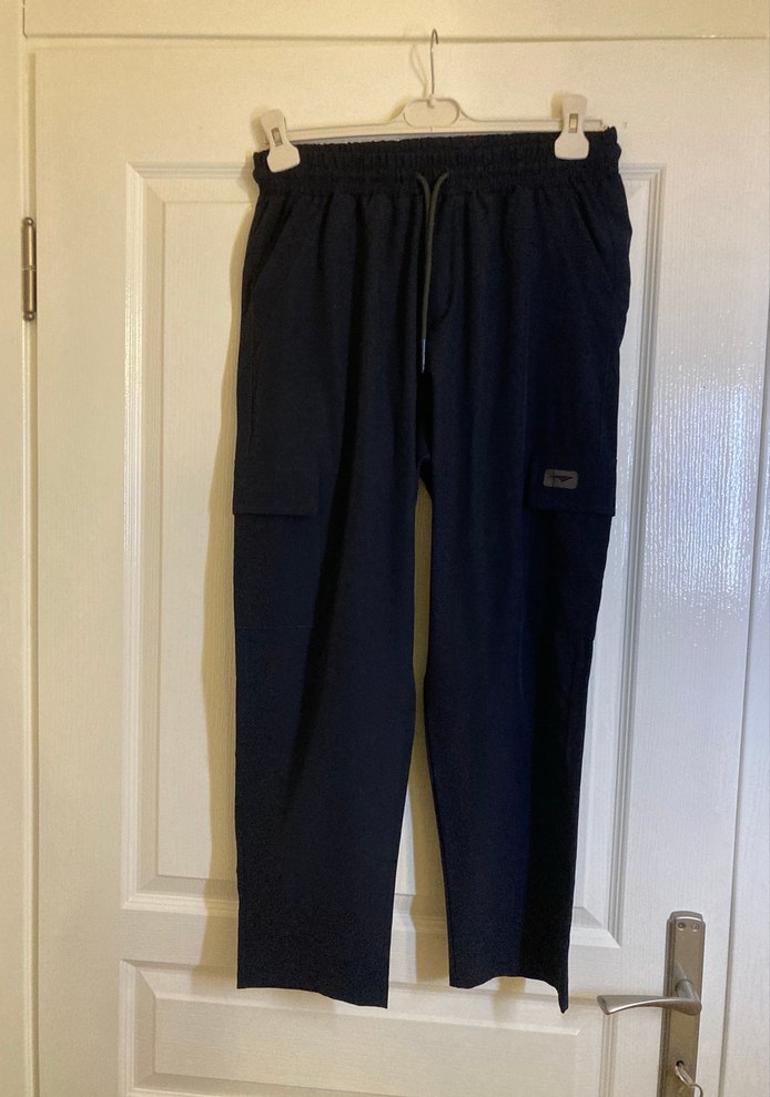 Bu siyah erkek outdoor eşofman, rahat kesim ve normal boyda, yumuşak ve sıcak kumaştan yapılmıştır. Ayarlanabilir konfor için kemerli ve günlük kullanım için uygundur.