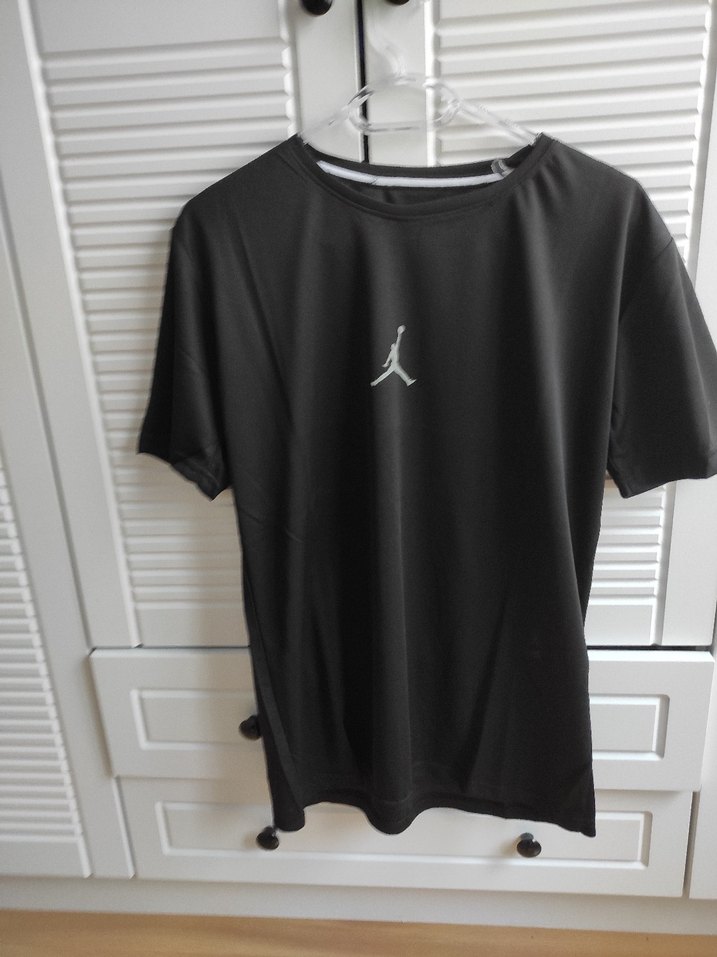 Siyah, kısa kollu, oversize kesim, yuvarlak yakalı erkek tişörtü. İpeksi kumaş ve baskılı logo ile spor tarzını yansıtır.