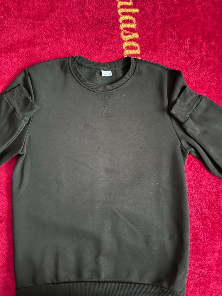 Siyah, yuvarlak yaka, uzun kollu ve bol kesim sweatshirt. Yumuşak ve sıcak kumaştan, rahat ve şık bir tarz sunar.