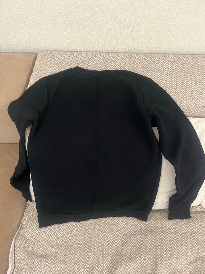 Siyah renk, yuvarlak yaka ve uzun kollu, bol kesim sweatshirt. Yumuşak ve sıcak kumaştan, günlük kullanım için uygun rahat bir stil sunar.