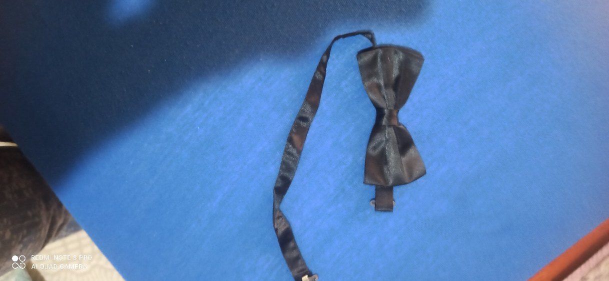 Siyah ve desensiz erkek papyon, modaya uygun ve yenilikçi bir tarz için idealdir.