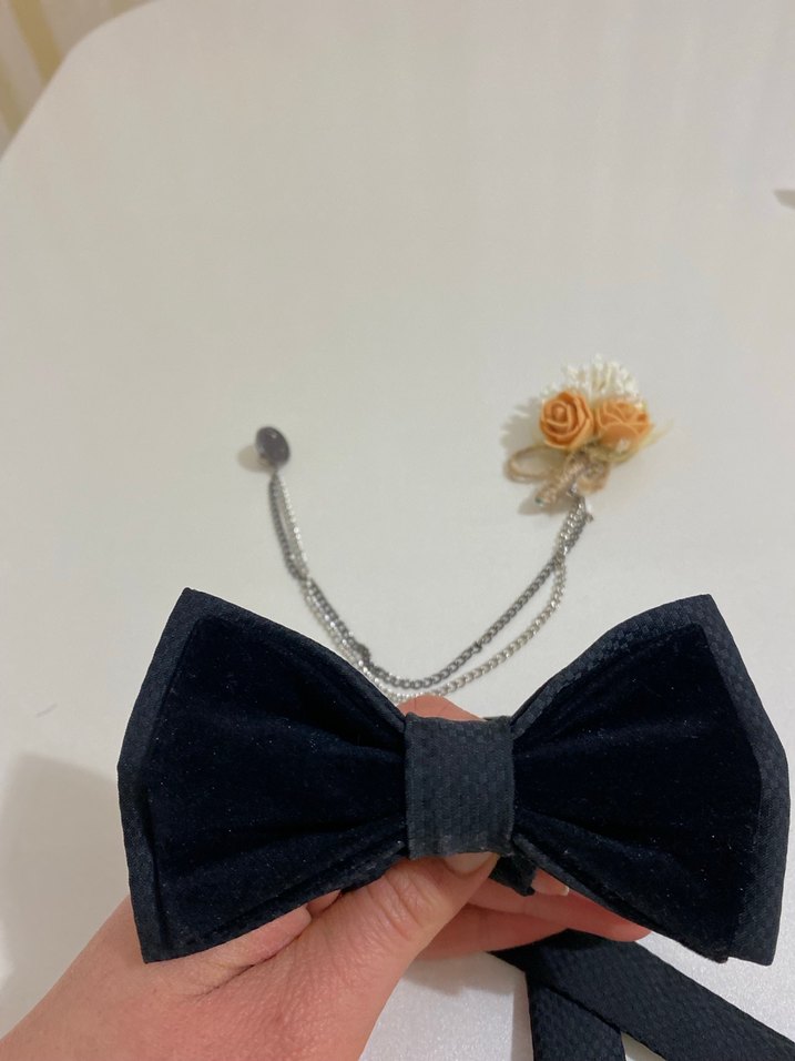 Siyah erkek papyon ve yaka çiçeği 1 kez kullanıldı.